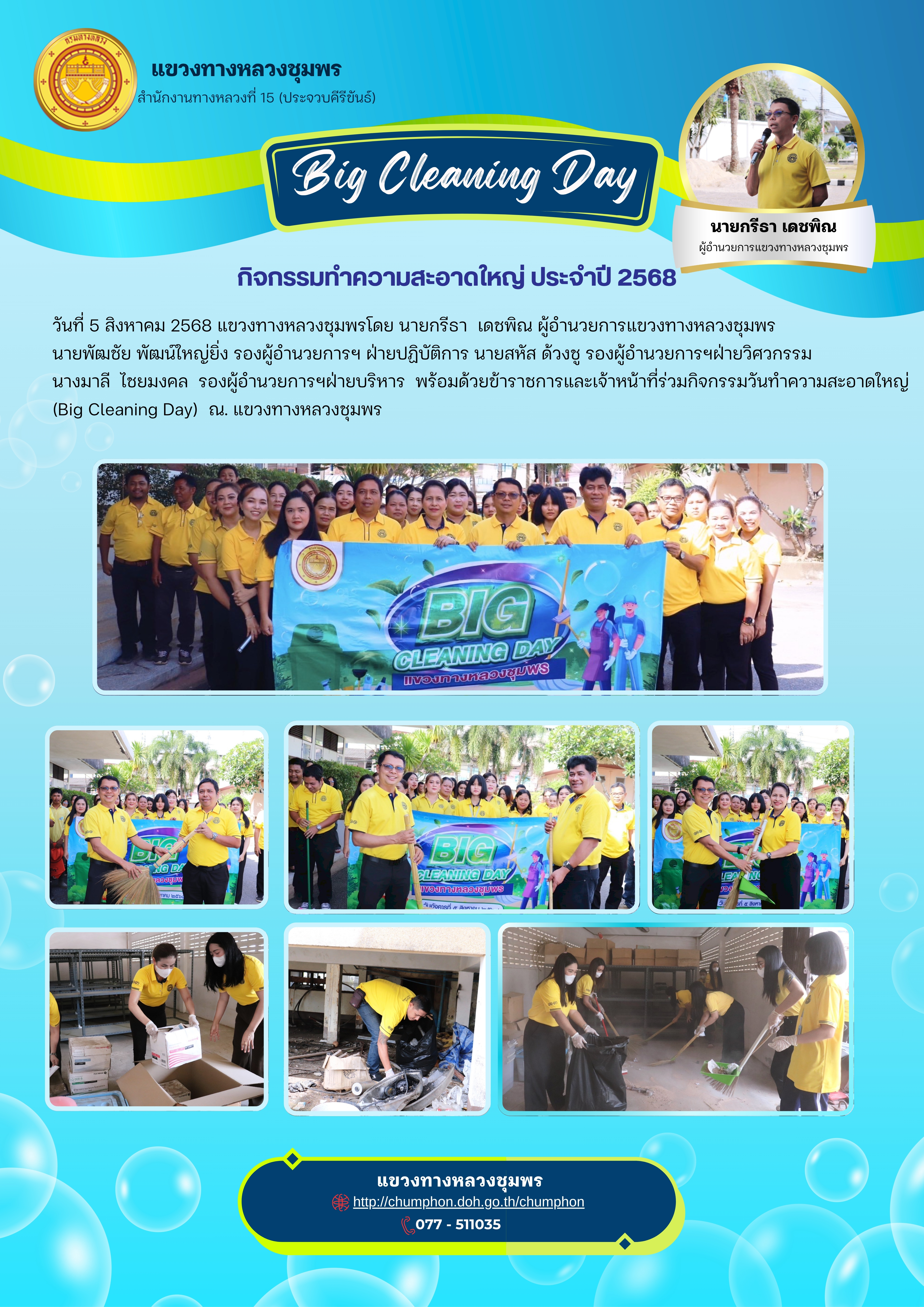 วันที่ 5 สิงหาคม 2568 ร่วมกิจกรรมวันทำความสะอาดใหญ่ (Big Cleaning Day) ณ แขวงทางหลวงชุมพร