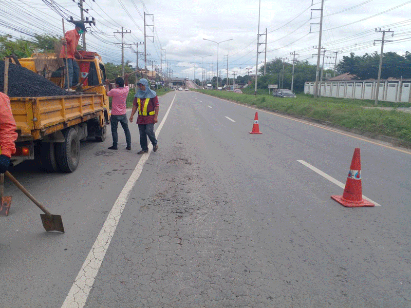 การปฏิบัติงานบำรุงรักษาทางหลวงในพื้นที่แขวงทางหลวงนครปฐม