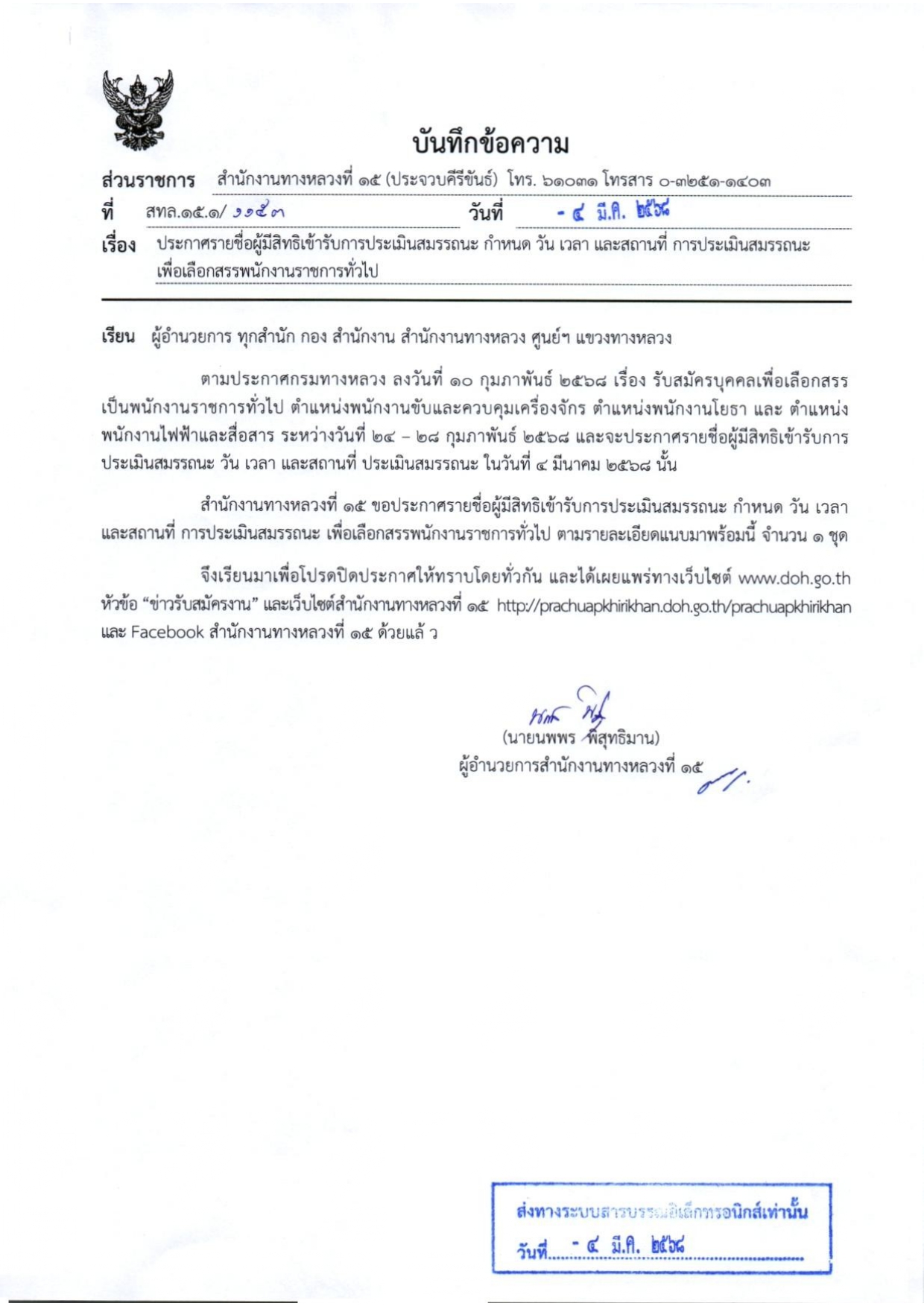 1. ตำแหน่งพนักงานขับและควบคุมเครื่องจักร สังกัดแขวงทางหลวงสมุทรสงคราม จำนวน 1 อัตรา