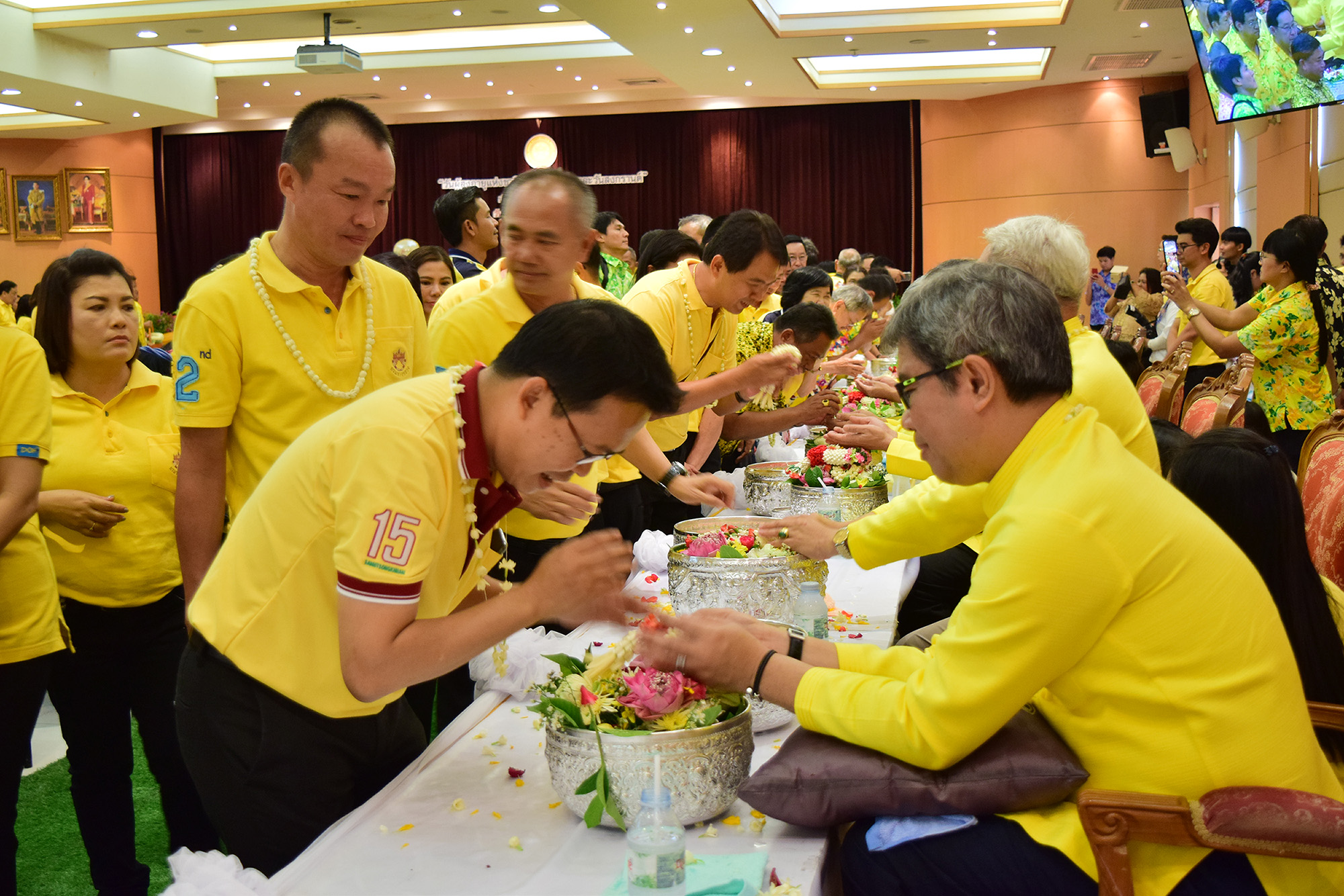 วันที่ 19 เมษายน 2562 เวลา 13.30 น. นายสถิตย์พงษ์ อภิเมธีธำรง ผู้อำนวยการสำนักงานทางหลวงที่ 15 (ประจวบคีรีขันธ์) นำคณะผู้บริหารและเจ้าหน้าที่สำนักงานฯ พร้อมด้วยผู้อำนวยการแขวงทางหลวง คณะผู้บริหาร และเจ้าหน้าที่แขวงทางหลวงในสังกัด เข้าร่วมงานวันผู้สูงอายุแห่งชาติ วันครอบครัว และวันสงกรานต์ ประจำปี 2562 ของกรมทางหลวง ณ ห้องสัมมนาเทิดศักดิ์ เศรษฐมานพ โดย นายอานนท์ เหลืองบริบูรณ์ อธิบดีกรมทางหลวง เป็นประธานในงาน ซึ่งมีอดีตผู้บริหาร ผู้บริหาร ข้าราชการ เจ้าหน้าที่ และพนักงานกรมทางหลวงทั้งส่วนกลางและส่วนภูมิภาค พร้อมทั้งตำรวจทางหลวงร่วมงานเพื่อแสดงมุทิตาจิต สืบสานประเพณีไทย