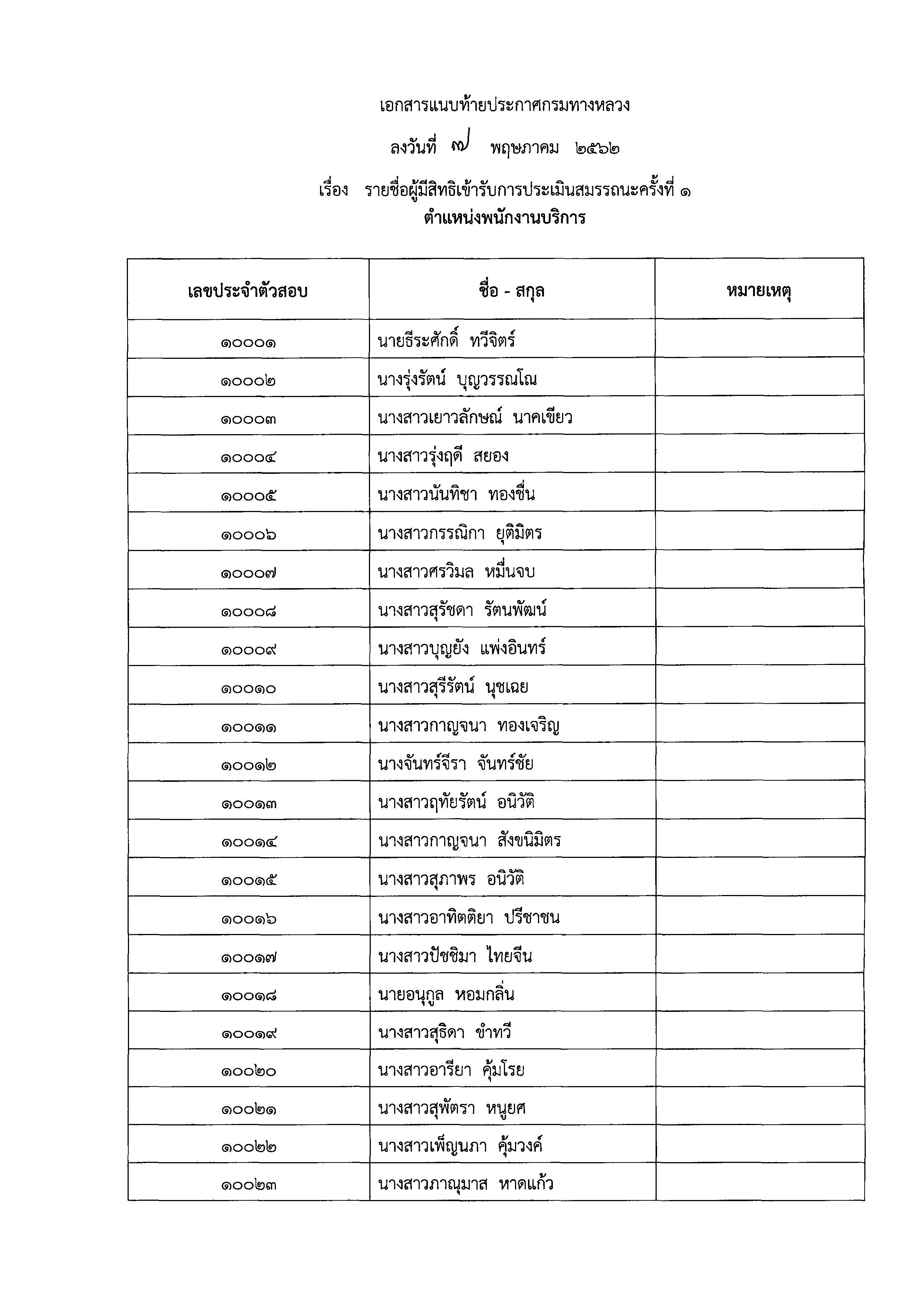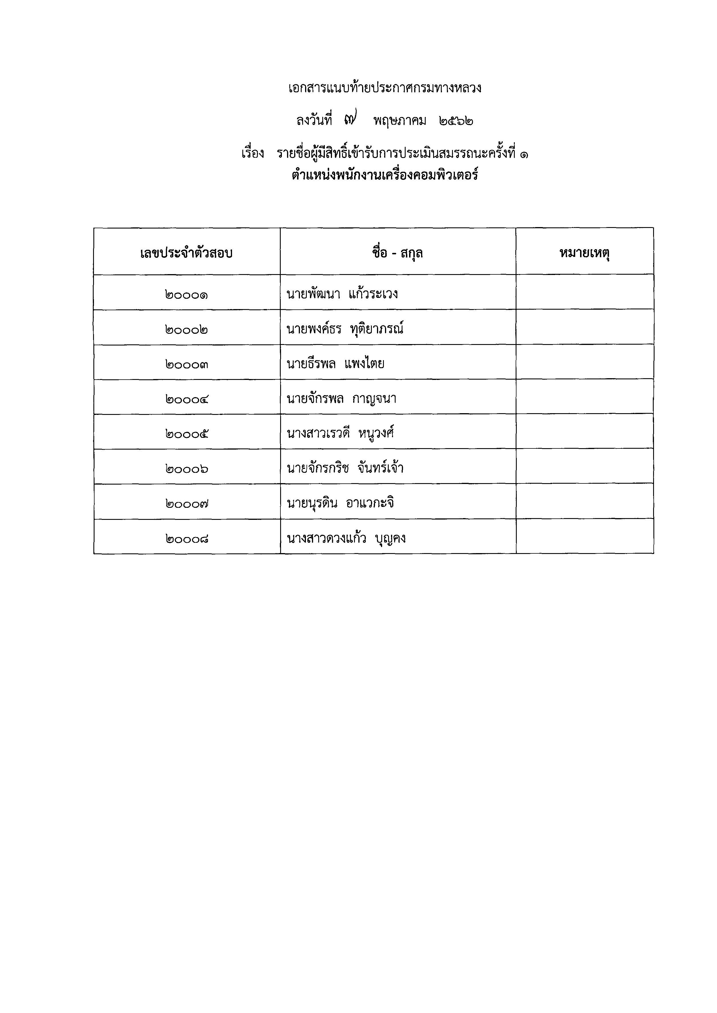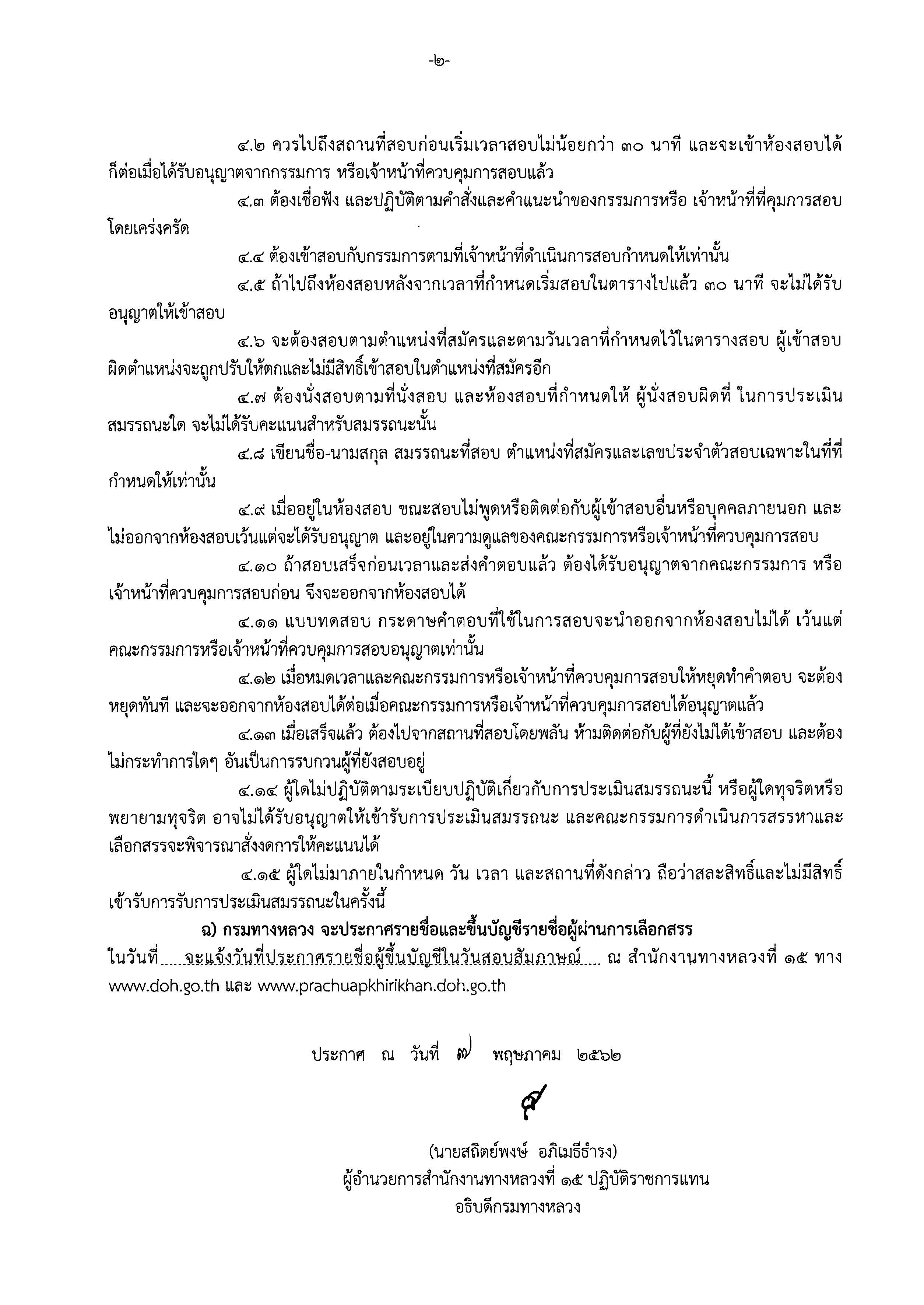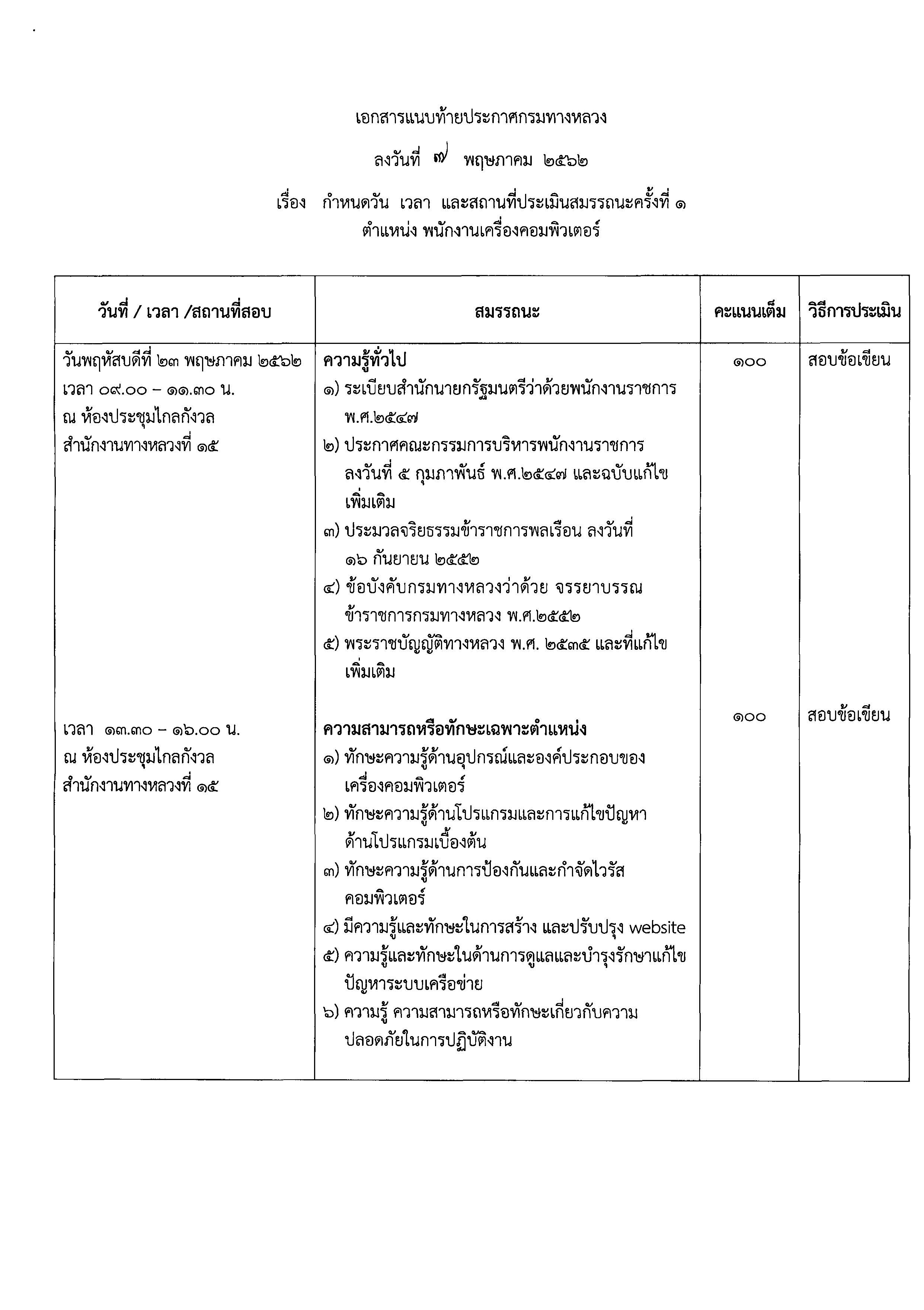 สำนักงานทางหลวงที่ ๑๕ (ประจวบคีรีขันธ์) ขอประกาศรายชื่อผู้มีสิทธิ์เข้ารับการประเมินสมรรถนะ กำหนด วัน เวลา และสถานที่ การประเมินสมรรถนะ เพื่อเลือกสรรพนักงานราชการทั่วไป ตำแหน่งพนักงานบริการ และตำแหน่งพนักงานเครื่องคอมพิวเตอร์