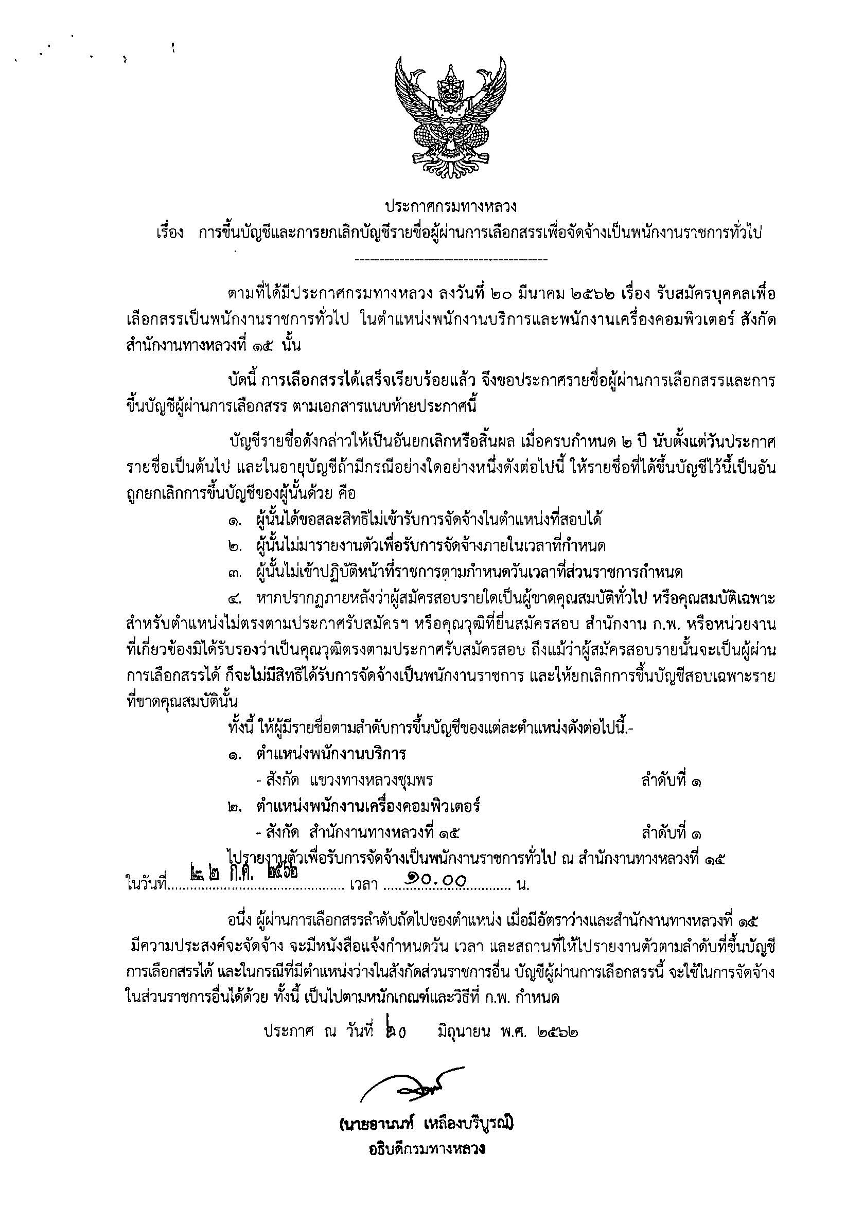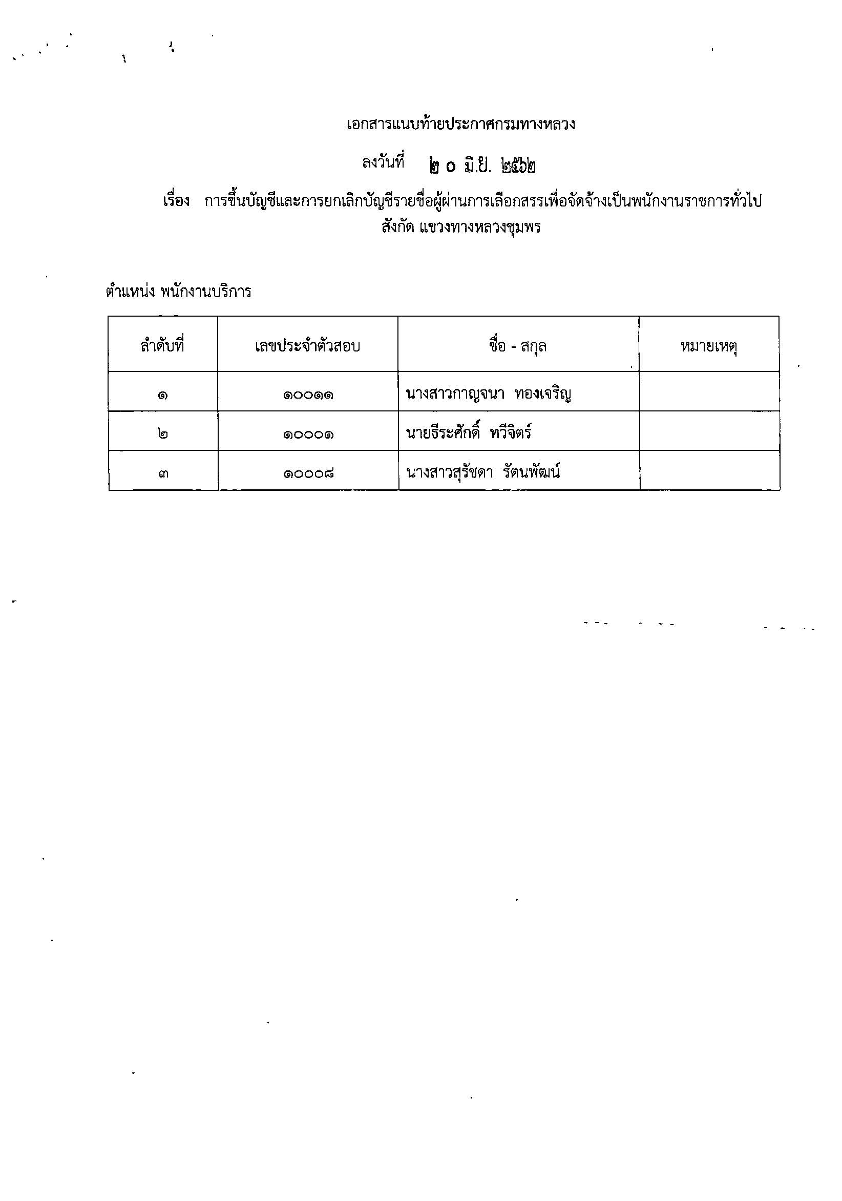 ประกาศขึ้นบัญชีและการยกเลิกบัญชีรายชื่อผู้ผ่านการเลือกสรรเพื่อจัดจ้างเป็นพนักงานราชการทั่วไป