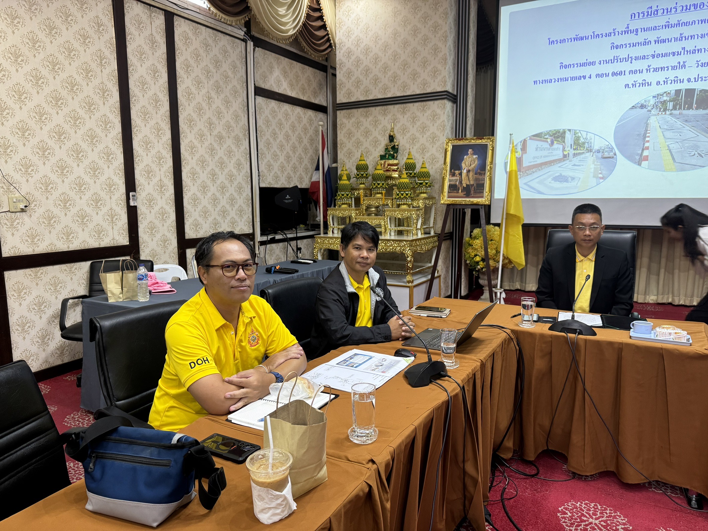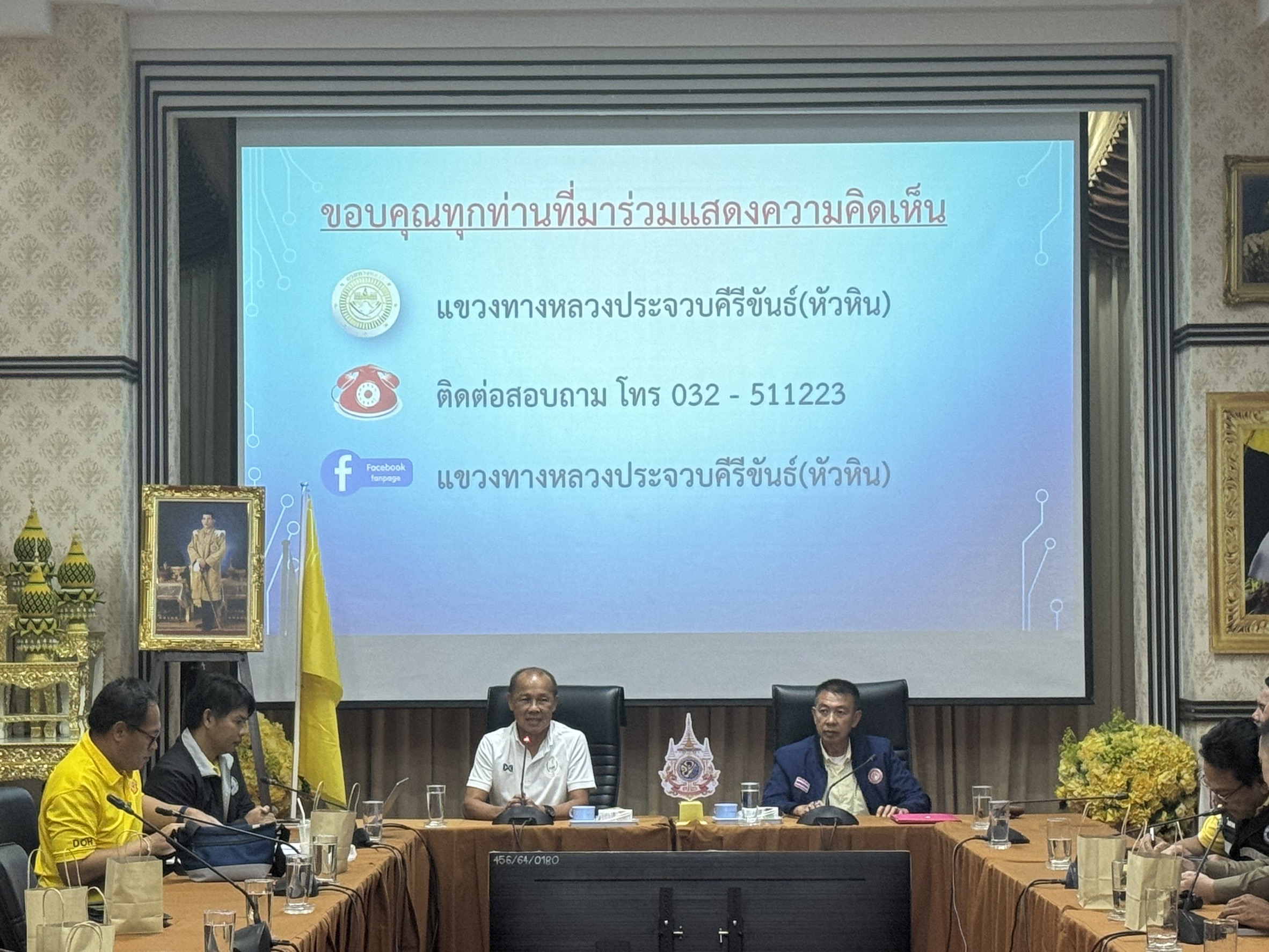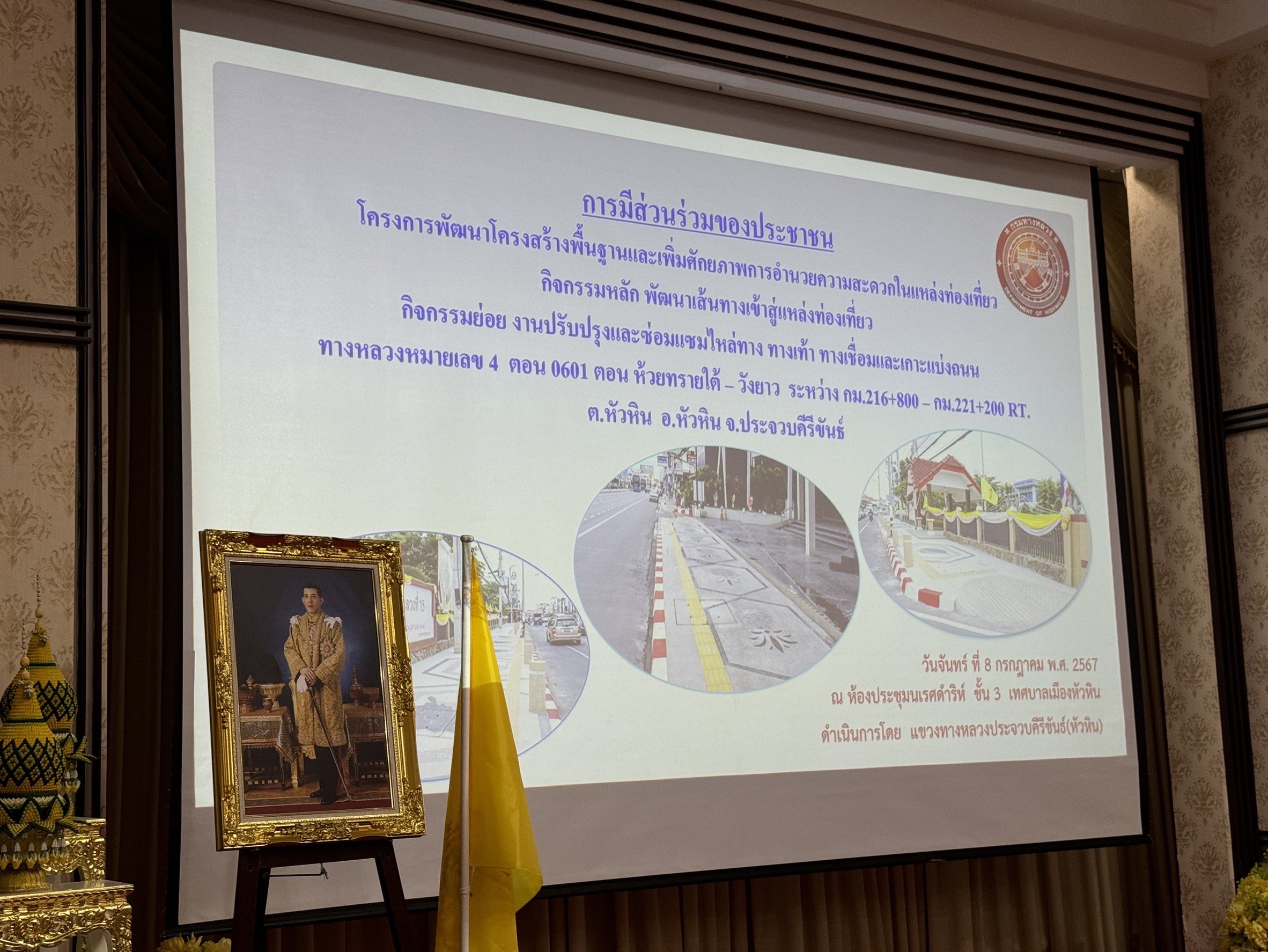 การดำเนินงานการมีส่วนร่วมของประชาชน เพื่อประชาสัมพันธ์ โครงการพัฒนาโครงสร้างพื้นฐานและเพิ่มศักยภาพการอำนวยความสะดวกในการท่องเที่ยว กิจกรรมหลัก พัฒนาเส้นทางทางเข้าสู่แหล่งท่องเที่ยว กิจกรรมย่อย งานปรับปรุงและซ่อมแซมไหล่ทาง ทางเท้า ทางเชื่อมและเกาะแบ่งถนน ทางหลวงหมายเลข 4 ตอน 0601 ตอน ห้วยทรายใต้ – วังยาว ระหว่าง กม.216+800 – กม.221+200 RT. ต.หัวหิน อ.หัวหิน จ.ประจวบคีรีขันธ์