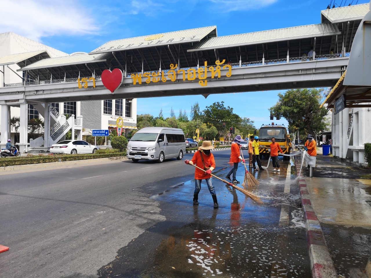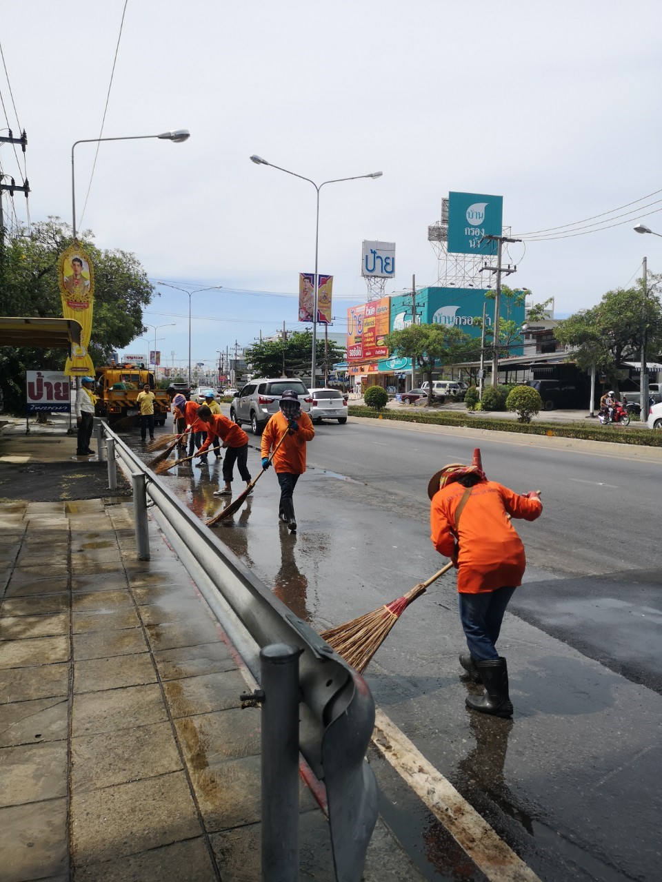 นายอภิชาติ ชาญธัญกร ผู้อำนวยการแขวงทางหลวงประจวบคีรีขันธ์(หัวหิน) พร้อมเจ้าหน้าที่ในสังกัด ร่วมกิจกรรม “พัฒนาทำความสะอาด ตัดแต่งกิ่งไม้ ผูกผ้า ติดตั้งไฟฟ้าแสงสว่างและปรับปรุงภูมิทัศน์” ตามโครงการจิตอาสา “เราทำความดี ด้วยหัวใจ” บริเวณด้านหน้าวังไกลกังวล (แนวถนนเพชรเกษม) อำเภอหัวหิน จังหวัดประจวบคีรีขันธ์ เนื่องในโอกาสมหามงคลพระราชพิธีบรมราชาภิเษก