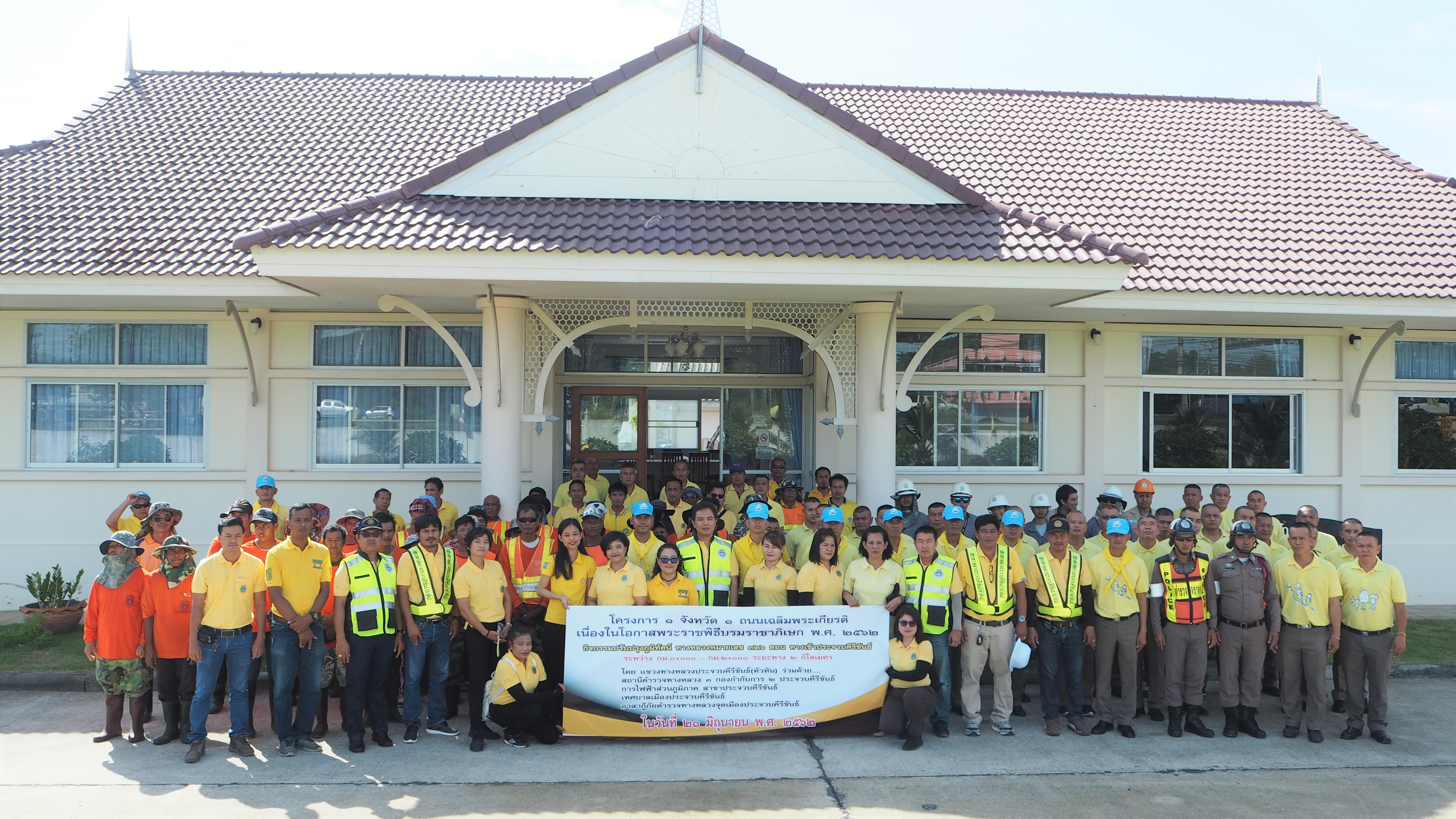 แขวงทางหลวงประจวบคีรีขันธ์(หัวหิน) นำโดย นายอภิชาติ ชาญธัญกร ผู้อำนวยการแขวงทางหลวงประจวบคีรีขันธ์(หัวหิน) พร้อมเจ้าหน้าที่ในสังกัด ร่วมกับ เจ้าหน้าที่สถานีตำรวจทางหลวง 3 กองกำกับการ 2 ประจวบคีรีขันธ์, การไฟฟ้าส่วนภูมิภาค สาขาประจวบคีรีขันธ์, เทศบาลเมืองประจวบคีรีขันธ์, และอาสากู้ภัยตำรวจทางหลวงจุดเมืองประจวบคีรีขันธ์ ดำเนินการปรับปรุงภูมิทัศน์ บนทางหลวงหมายเลข 326 ตอน ทางเข้าประจวบคีรีขันธ์ ระหว่าง กม.0+000 - กม.2+000 รวมระยะทาง 2 กิโลเมตร ตามโครงการ 1 จังหวัด 1 ถนนเฉลิมพระเกียรติ เนื่องในโอกาสพระราชพิธีบรมราชาภิเษก พ.ศ.2562 เพื่อทำให้เกิดทัศนวิสัยที่สวยงามและอำนวยความสะดวกปลอดภัยแก่ผู้ใช้ทาง